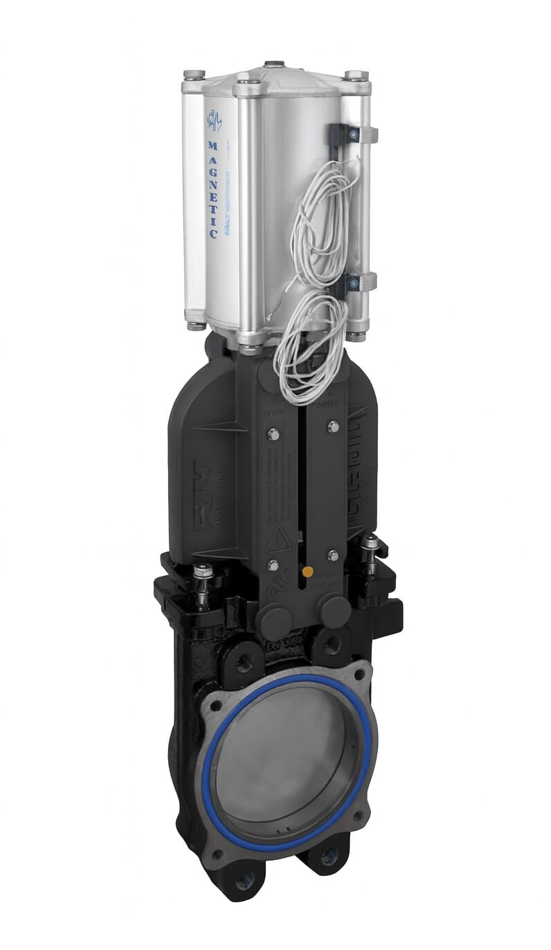 Kniv ventil 6 m/dbl virk. pneu. sylinder. og pos.