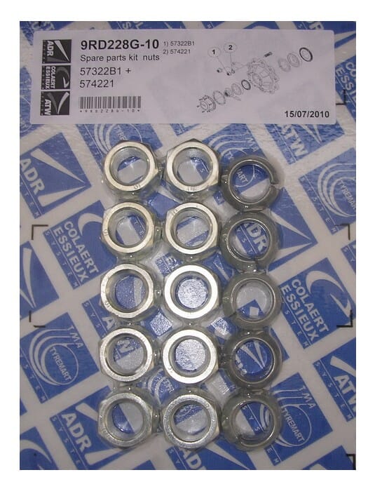 Hjulmutter M22x1.5. 57322B1 og skive 574221. 10 stk
