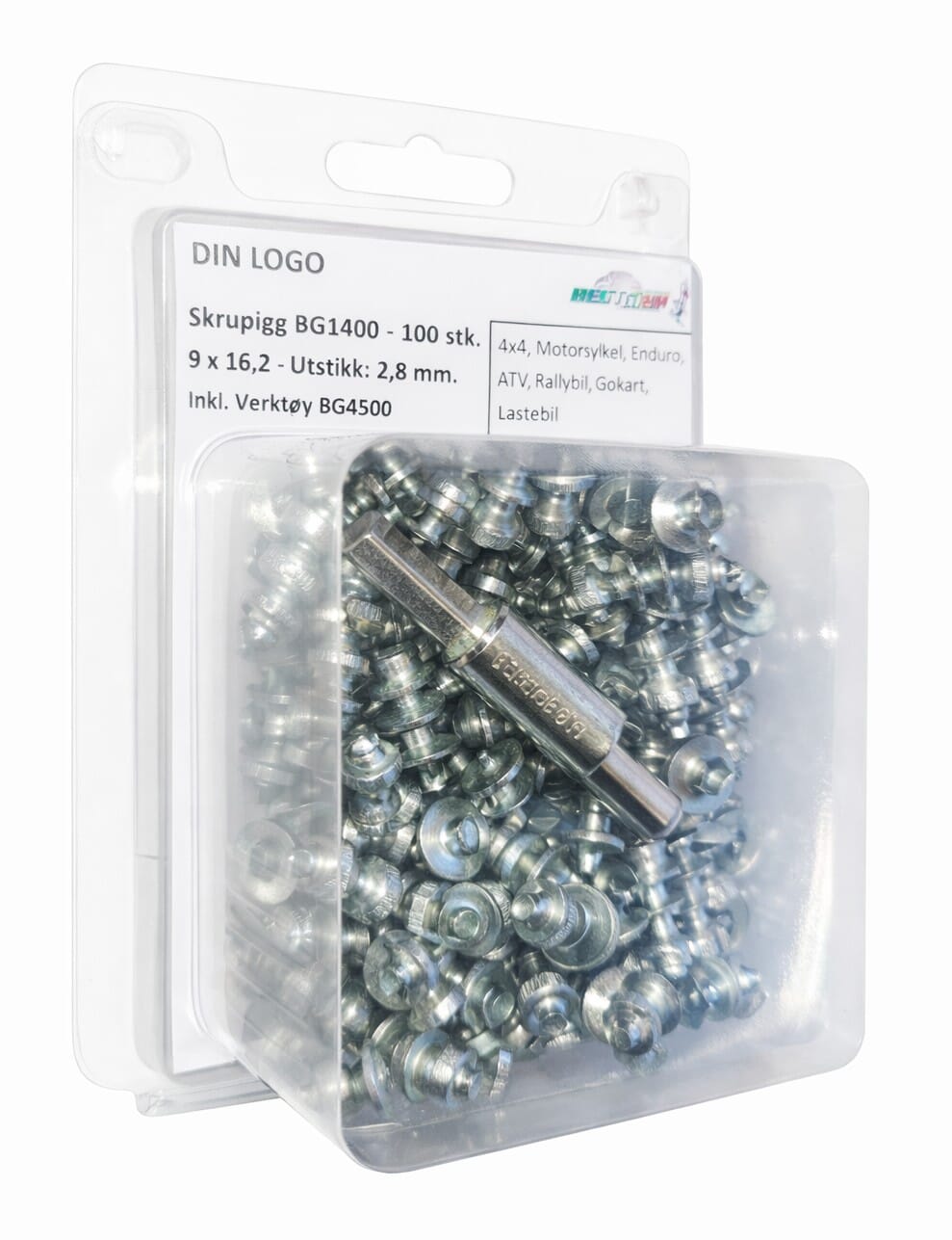 100 stk. pigger inkl. verktøy (BG4500), pakket i blister.
