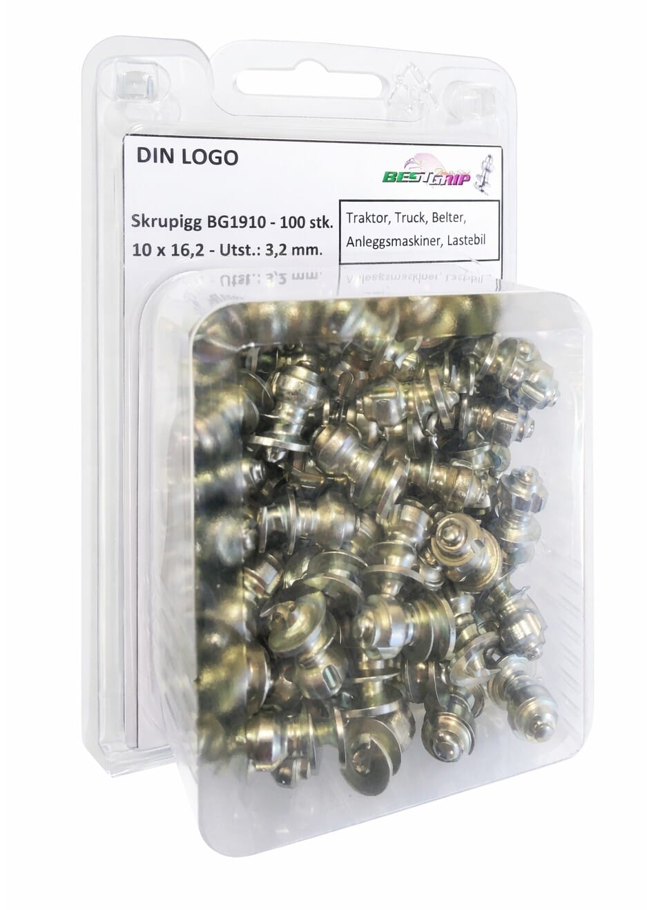 100 stk. pigger, pakket i blister. Verktøy bestilles separat (BG4910).