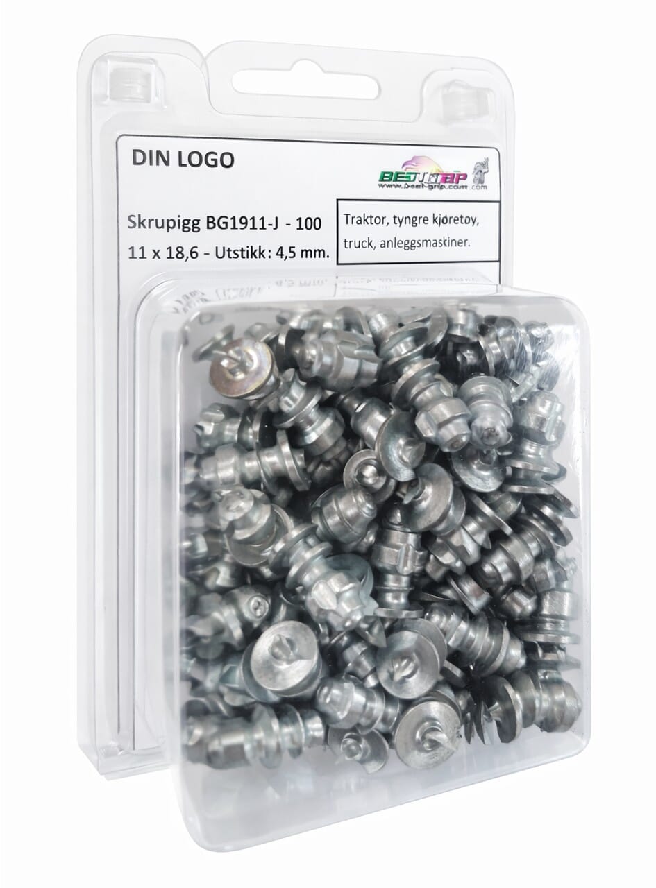 100 stk. pigger, pakket i blister. Verktøy bestilles separat (BG4911-3).