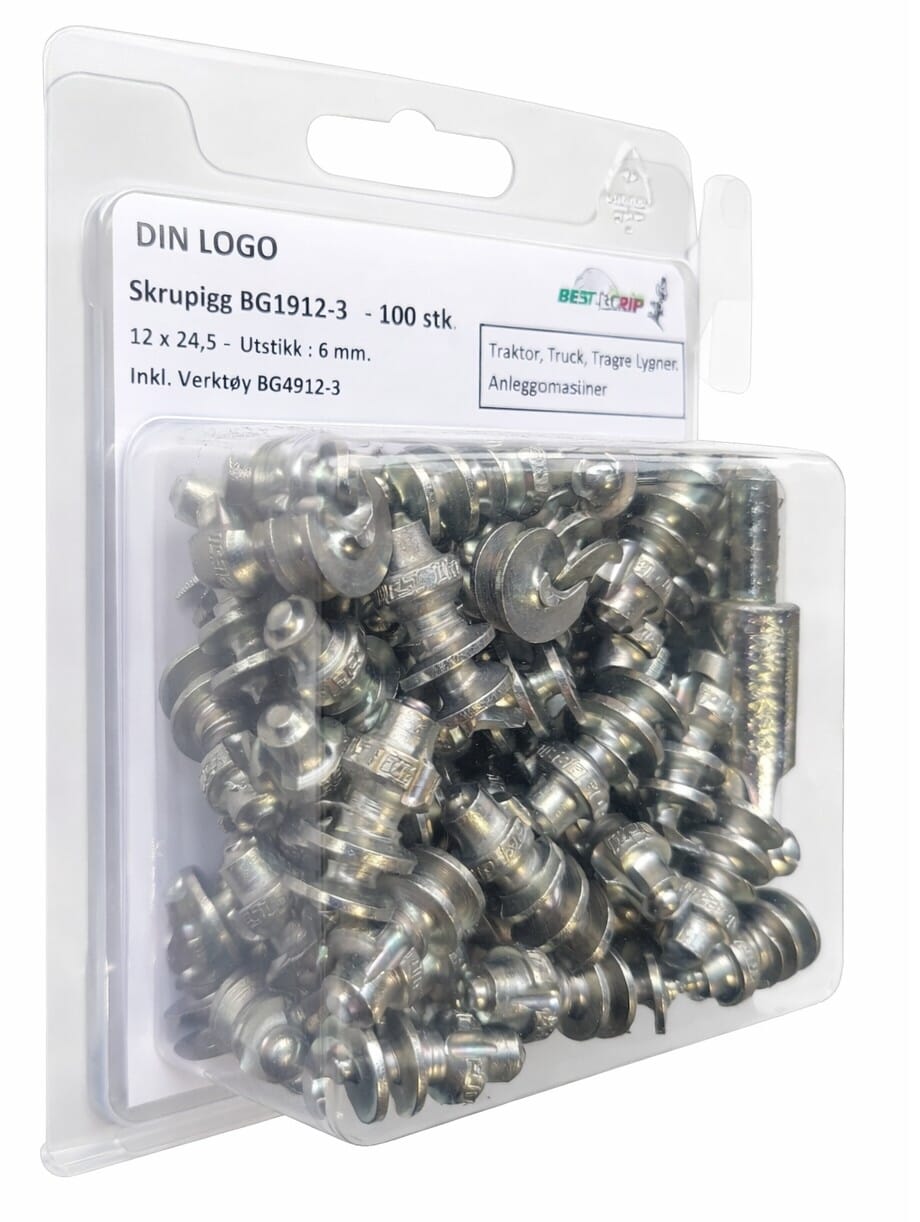 100 stk. pigger inkl. verktøy, pakket i blister.