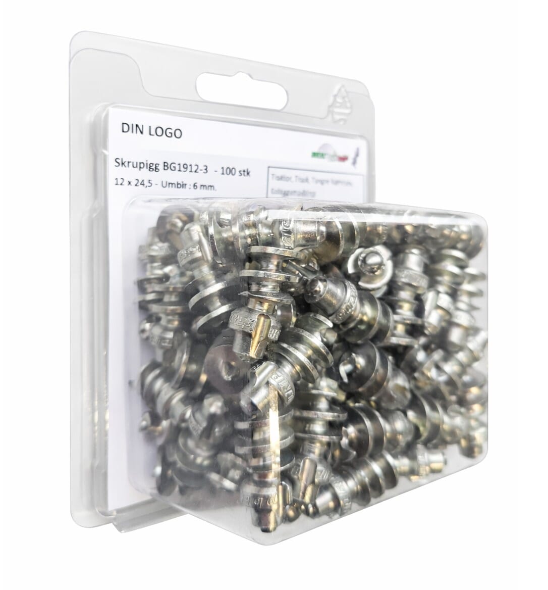 100 stk. pigger, pakket i blister. Verktøy kjøpet separat (BG4912-3).