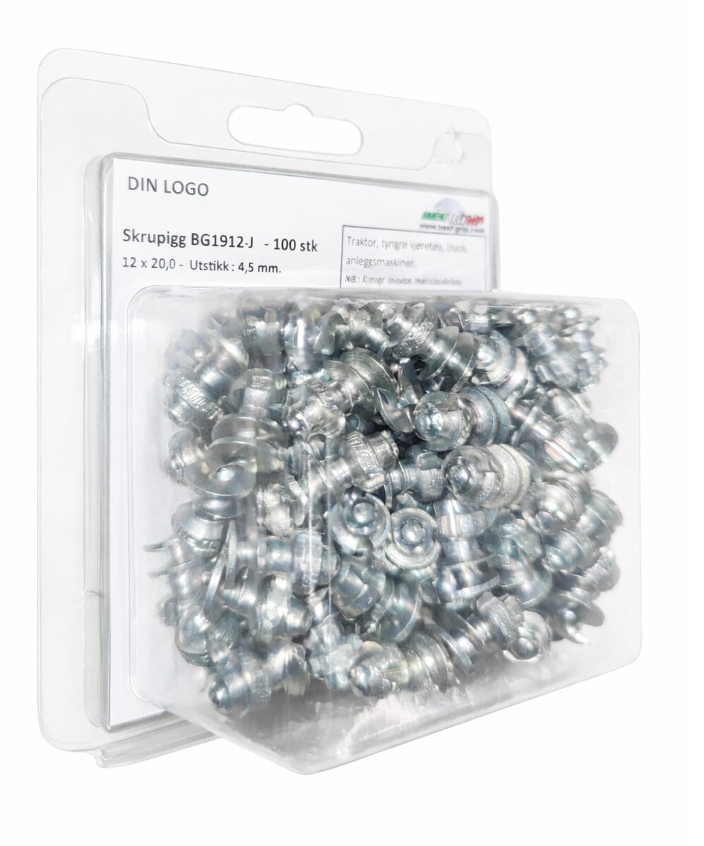 100 stk. pigger, pakket i blister. Verktøy bestilles separat (BG4912-3).